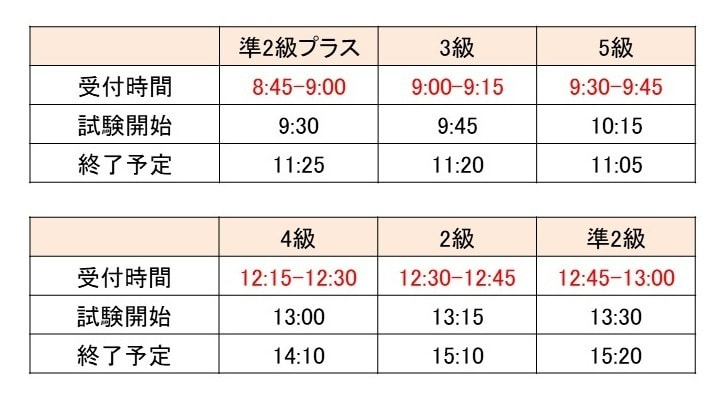 ※受付時間を過ぎると受験できないことがありますのでお気をつけ下さい。