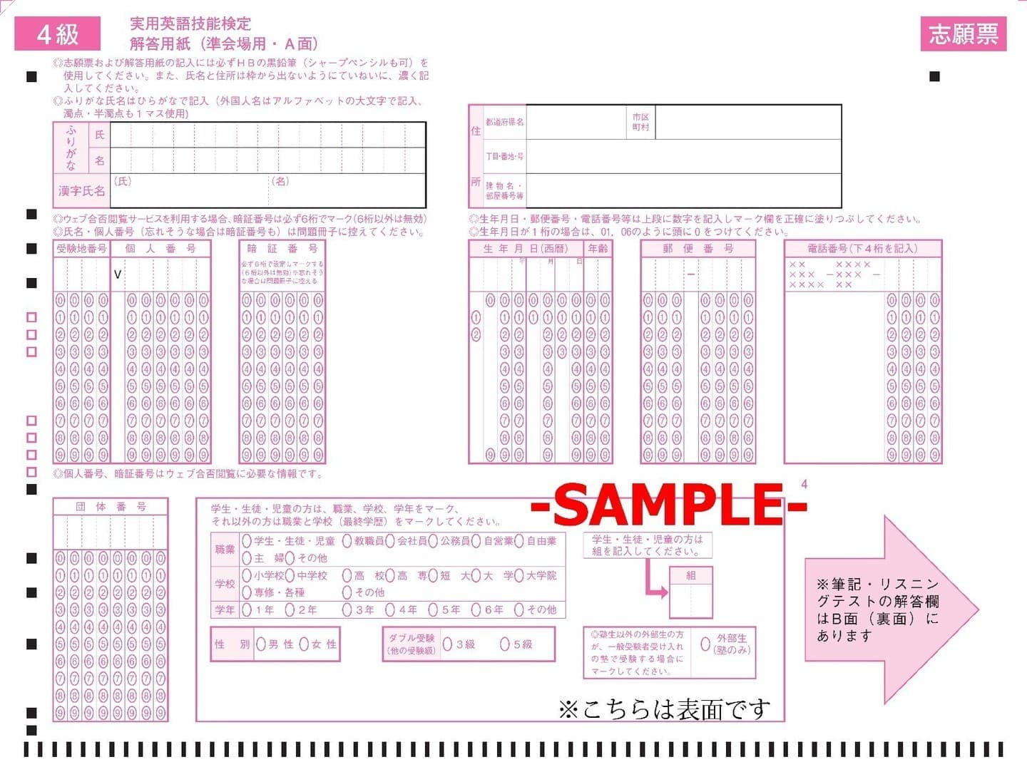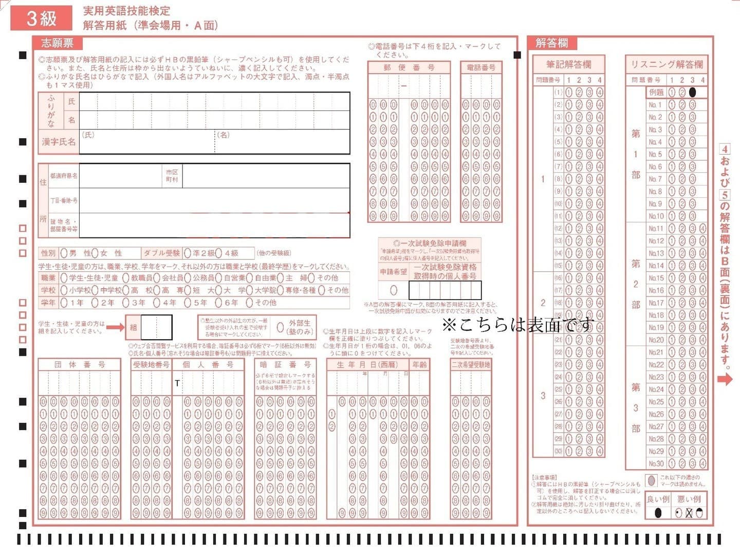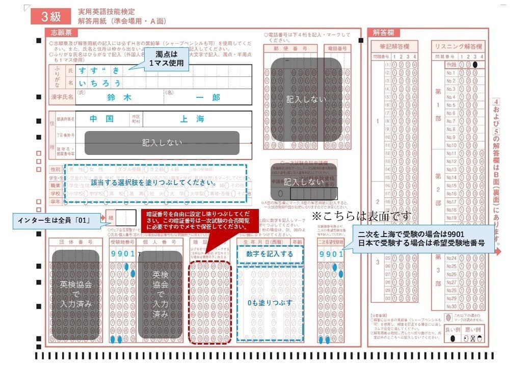 解答用紙記入例(一次)