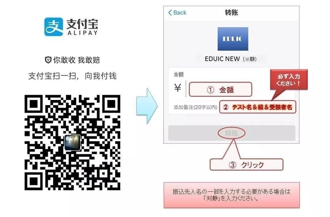 支付宝でのお支払い後に「支払確認フォーム」を入力、送信いただきます。